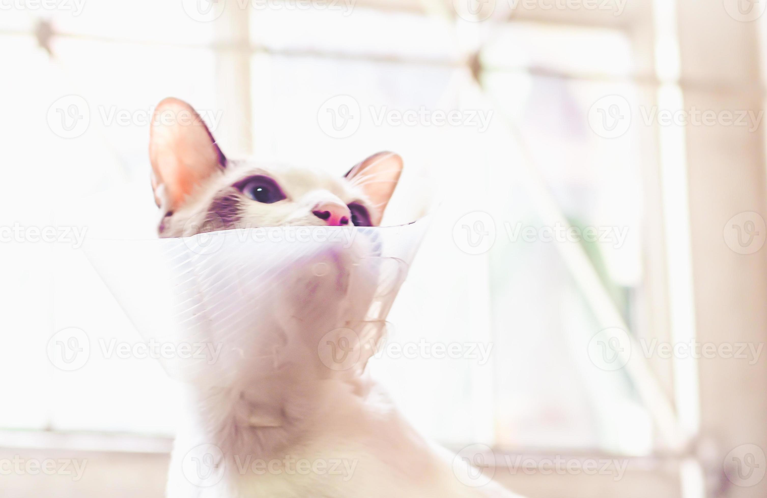 Cat With Collar Cat After Surgery Pain In Cats Painful Pets Collar Cone Translucent Recovery Plastic Protective Anti Bite Lick Wound Healing Safe Comfort Protection 5159721 Stock Photo At Vecteezy